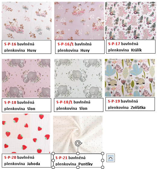 UVÁDĚJTE VŽDY U OBJEDNÁVKY, VE SHRNUTÍ OBJEDNÁVKY - Doplňující informace - POZNÁMKA např. (PLENA 10 ks. S-M 3 - krémová světlá - 35x35 / OSUŠKA 1 ks. S-M 22 - 130x140 / OSUŠKA 1 ks. S-P 1 - kravička 130x140 atd.)